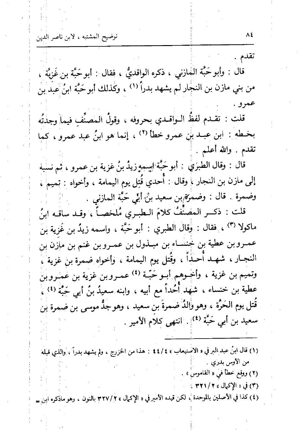 تقدم. قَالَ: وَأَبُو حَبَّة الْمَازِني ذكره الْوَاقِدِيّ فَقَالَ: أَبُو حَبَّة بن غزيَّة من بني مَازِن بن النجار لم يشْهد بَدْرًا وَكَذَلِكَ أَبُو حَبَّة ابْن عبد بن عَمْرو. قلت: تقدم لفظ الْوَاقِدِيّ بِحُرُوفِهِ وَقَول المُصَنّف فِيمَا وجدته بِخَطِّهِ: ابْن عبد بن عَمْرو خطأ إِنَّمَا هُوَ ابْن عبد عَمْرو كَمَا تقدم. وَالله أعلم. قَالَ: وَقَالَ الطَّبَرِيّ: أَبُو حَبَّة اسْمه زيد بن غزيَّة بن عَمْرو ثمَّ نسبه إِلَى مَازِن بن النجار وَقَالَ: أحدي قتل يَوْم الْيَمَامَة وأخواه: تَمِيم وضمرة. قَالَ: وضمرة بن سعيد بن أبي حَبَّة الْمَازِني. قلت: ذكر المُصَنّف كَلَام الطَّبَرِيّ مُلَخصا وَقد سَاقه ابْن مَاكُولَا فَقَالَ: وَقَالَ الطَّبَرِيّ: أَبُو حَبَّة واسْمه زيد بن غزيَّة بن عَمْرو بن عَطِيَّة بن خنساء بن مبذول بن عَمْرو بن غنم بن مَازِن بن النجار شهد أحدا وَقتل يَوْم الْيَمَامَة وأخواه ضَمرَة بن غزيَّة وَتَمِيم بن غزيَّة وأخوهم أَبُو حَبَّة عَمْرو بن غزيَّة بن عَمْرو بن عَطِيَّة بن خنساء شهد أحدا مَعَ أَبِيه وَابْنه سعيد بن أبي حَبَّة قتل يَوْم الْحرَّة وَهُوَ وَالِد ضَمرَة بن سعيد وَهُوَ جد مُوسَى بن ضَمرَة بن سعيد بن أبي حَبَّة. انْتهى كَلَام الْأَمِير.