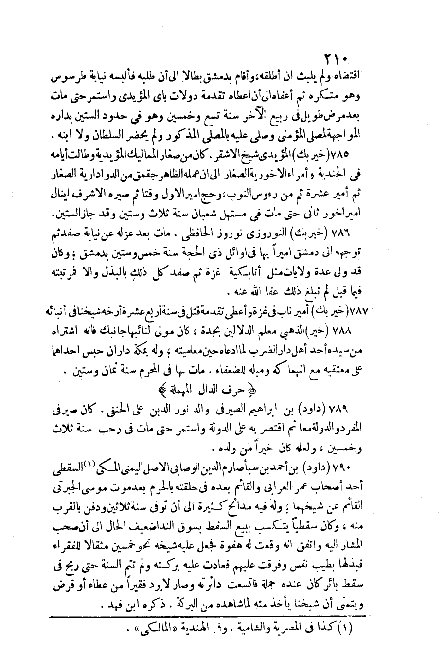 786 - خير بك النوروزي نوروز الحافظي. / مَاتَ بعد عَزله عَن نِيَابَة صفد ثمَّ توجهه إِلَى دمشق أَمِيرا بهَا فِي أَوَائِل ذِي الْحجَّة سنة خمس وَسِتِّينَ بِدِمَشْق وَكَانَ قد ولي عدَّة ولايات مثل أتابكية غَزَّة ثمَّ صفد كل ذَلِك بالبذل وَإِلَّا فمرتبته فِيمَا قيل لم تبلغ ذَلِك عَفا الله عَنهُ.