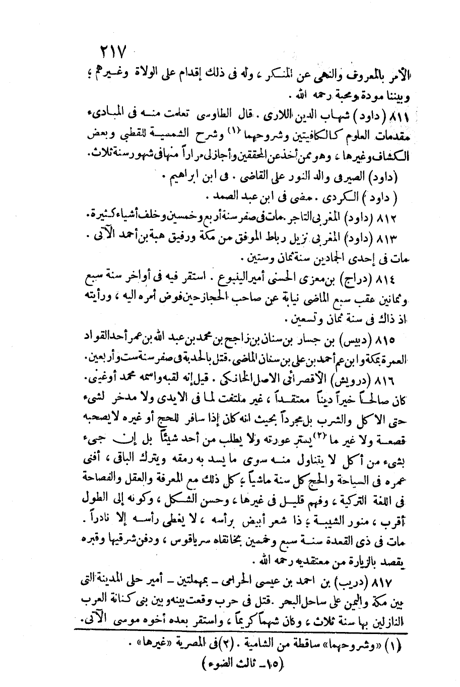 811 - دَاوُد شهَاب الدّين اللاري /. قَالَ الطاوسي تعلمت مِنْهُ فِي المبادىء مُقَدمَات الْعُلُوم كالكافيتين وشروحهما وَشرح الشمسية للقطبي وَبَعض الْكَشَّاف وَغَيرهَا، وَهُوَ مِمَّن أَخذ عَن الْمُحَقِّقين وَأَجَازَ لي مرَارًا مِنْهَا فِي شهور سنة ثَلَاث.