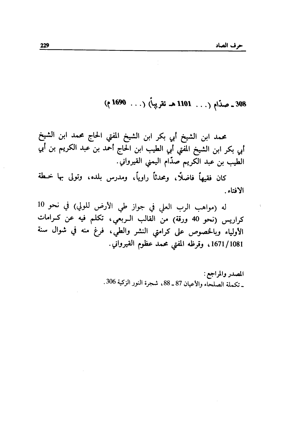 - تكملة الصلحاء والأعيان 87 - 88، شجرة النور الزكية 306.