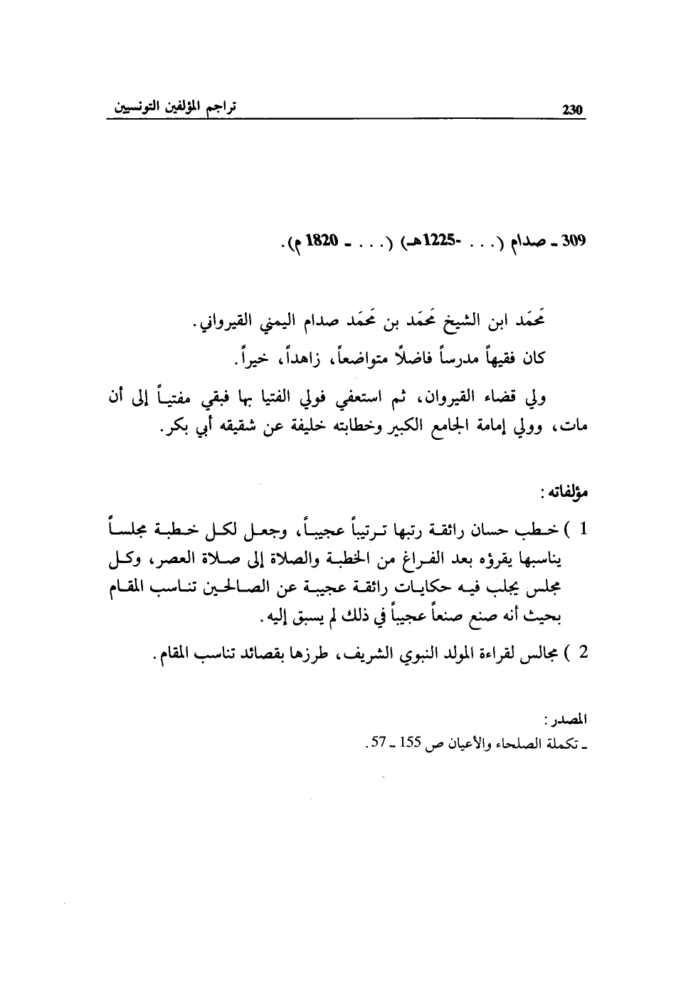 309 - صدام ( ... - 1225 هـ) ( ... - 1820 م).