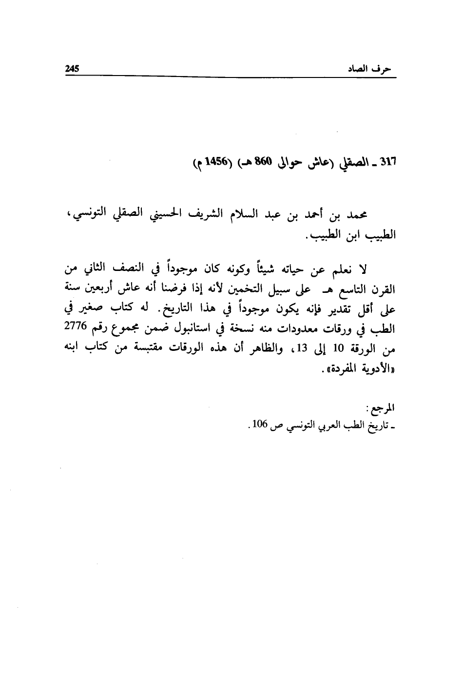 317 - الصقلي (عاش حوالى 860 هـ) (1456 م)