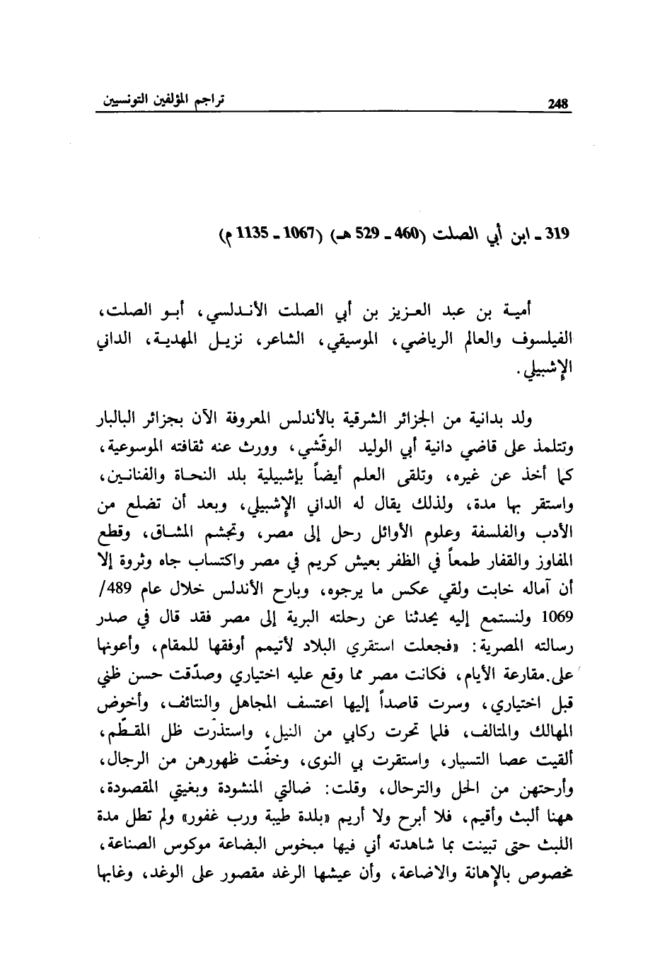 319 - ابن أبي الصلت (460 - 529 هـ) (1067 - 1135 م)