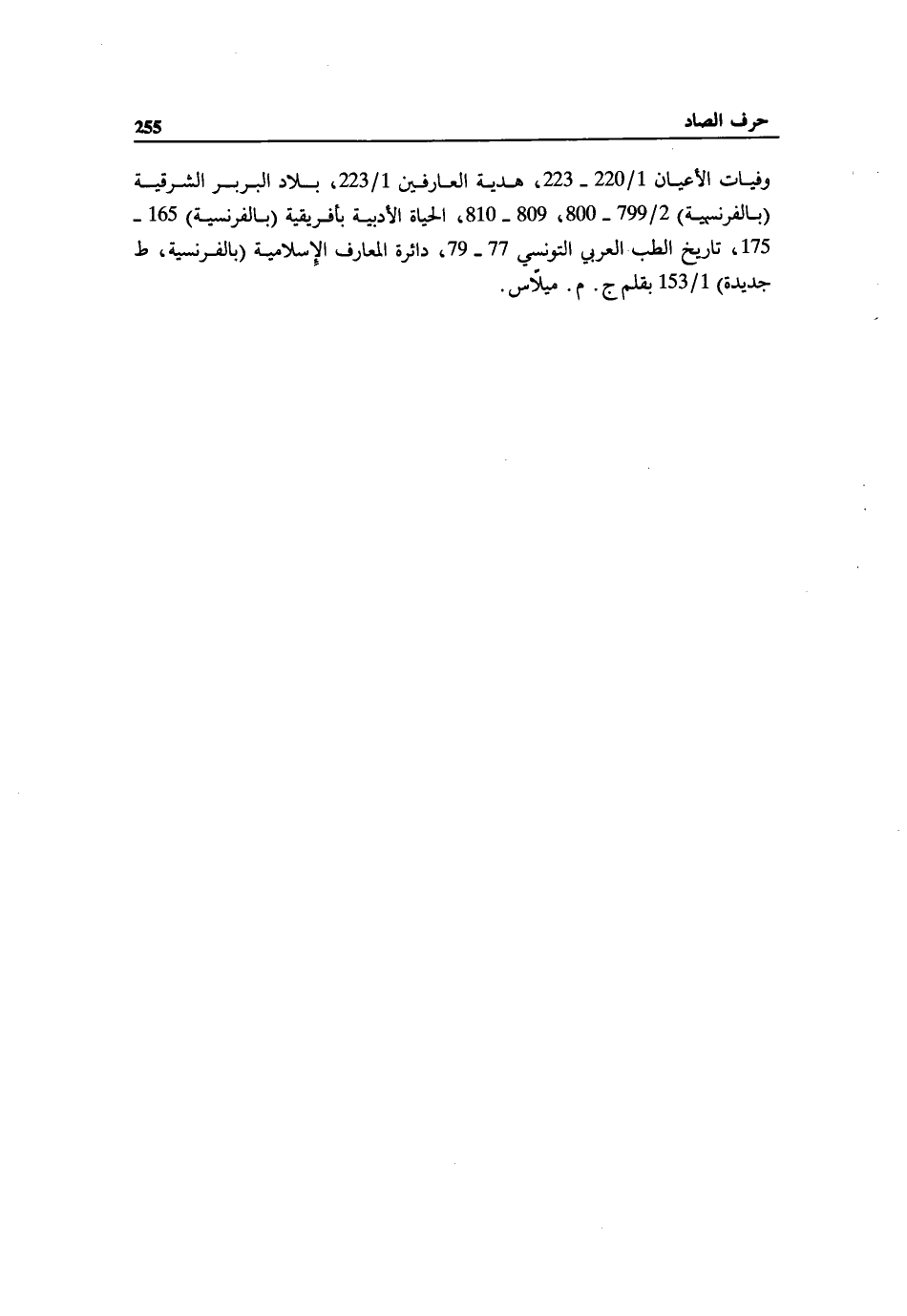 وفيات الأعيان 1/ 220 - 223، هدية العارفين 1/ 223، بلاد البربر الشرقية (بالفرنسية) 2/ 799 - 800، 809 - 810، الحياة الأدبية بأفريقية (بالفرنسية) 165 - 175، تاريخ الطب العربي التونسي 77 - 79، دائرة المعارف الإسلامية (بالفرنسية، ط جديدة) 1/ 153 بقلم ج. م. ميلاّس.