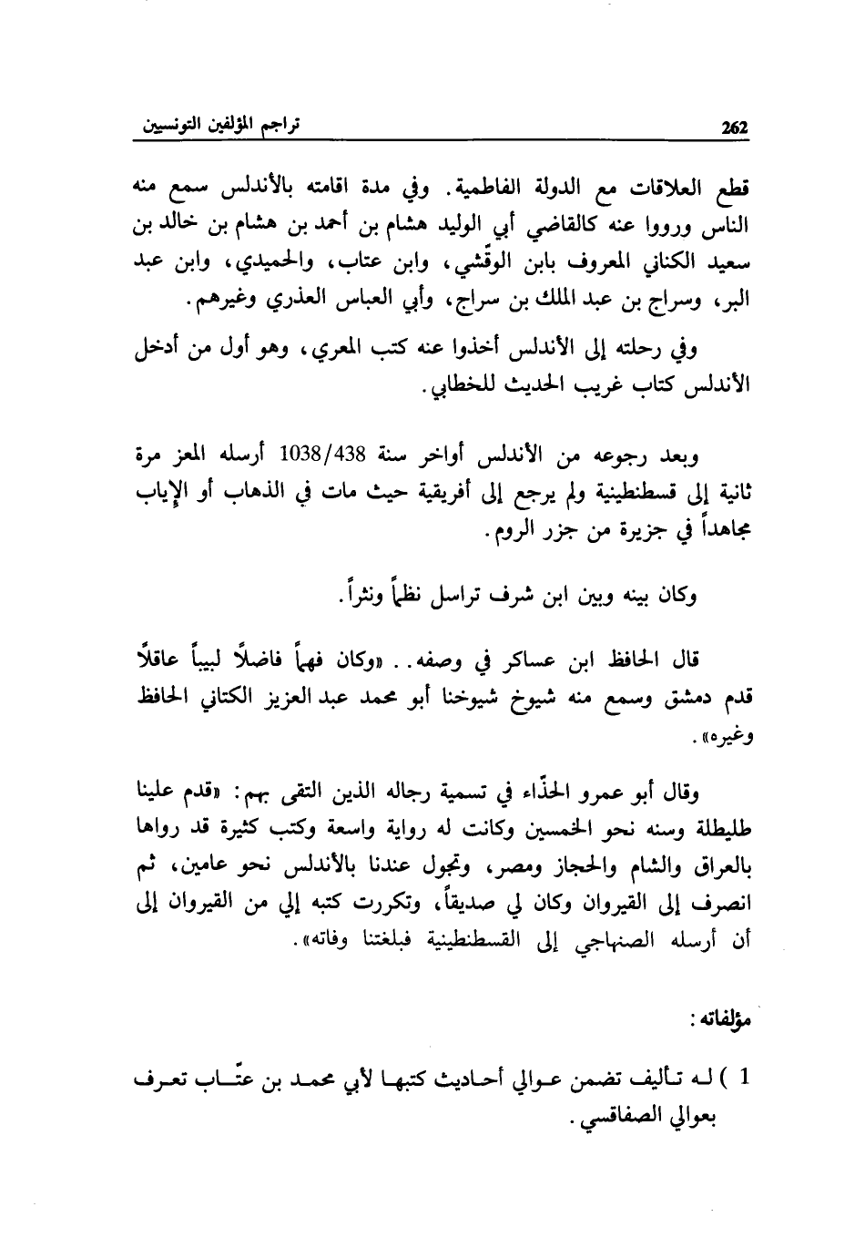 1) له تأليف تضمن عوالي أحاديث كتبها لأبي محمد بن عتّاب تعرف بعوالي الصفاقسي.