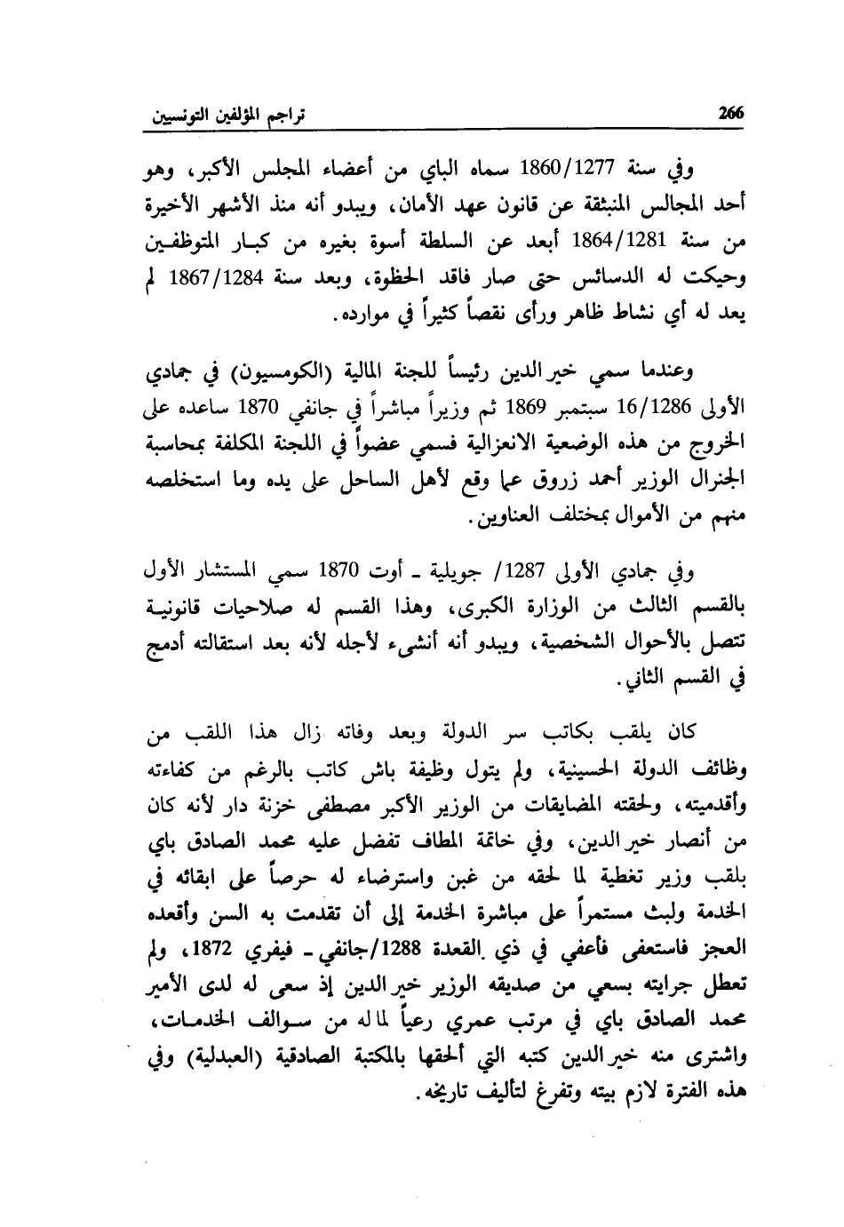 وعند ما سمي خير الدين رئيسا للجنة المالية (الكومسيون) في جمادي الأولى 1286/ 16 سبتمبر 1869 ثم وزيرا مباشرا في جانفي 1870 ساعده على الخروج من هذه الوضعية الانعزالية فسمي عضوا في اللجنة المكلفة بمحاسبة الجنرال الوزير أحمد زروق عما وقع لأهل الساحل على يده وما استخلصه منهم من الأموال بمختلف العناوين.