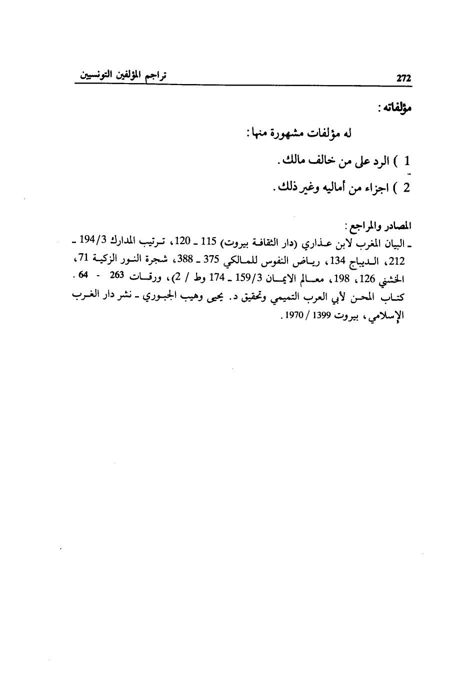 كتاب المحن لأبي العرب التميمي وتحقيق د. يحيى وهيب الجبوري - نشر دار الغرب الإسلامي، بيروت 1399/ 1970.