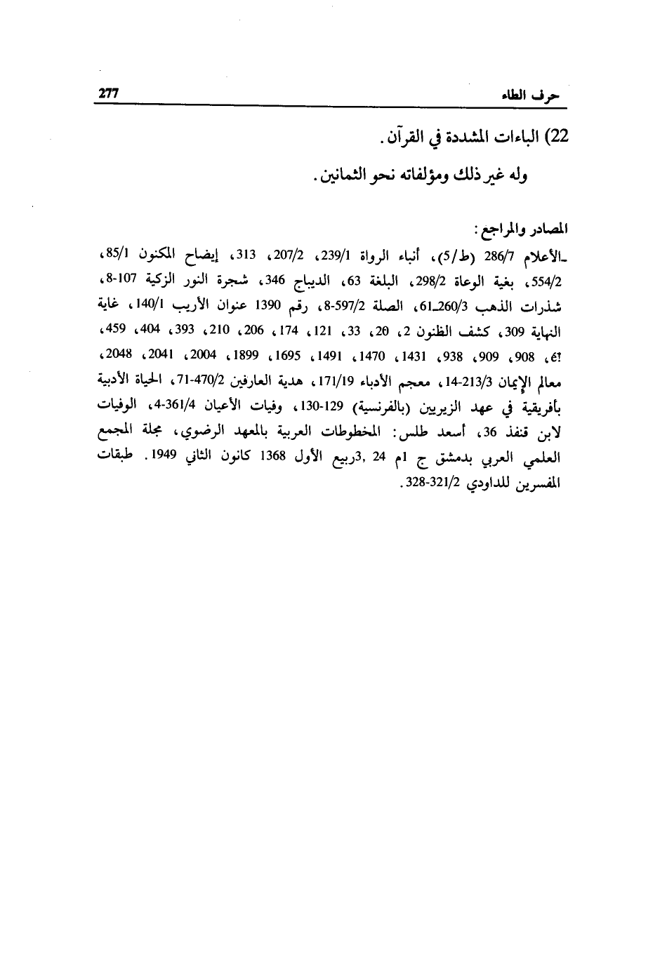 - الأعلام 7/ 286 (ط 5/)، أنباء الرواة 1/ 239، 2/ 207، 313، إيضاح المكنون 1/ 85، 2/ 554، بغية الوعاة 2/ 298، البلغة 63، الديباج 346، شجرة النور الزكية 107 - 8، شذرات الذهب 3/ 260 - 61، الصلة 2/ 597 - 8، رقم 1390 عنوان الأريب 1/ 041، غاية النهاية 309، كشف الظنون 2، 20، 33، 121، 174، 206، 210، 393، 404، 459، 908، 909، 938، 1431، 1470، 1491، 1695، 1899، 2004، 2041، 2048، معالم الإيمان 3/ 213 - 14، معجم الأدباء 19/ 171، هدية العارفين 2/ 470 - 71، الحياة الأدبية بأفريقية في عهد الزيريين (بالفرنسية) 129 - 130، وفيات الأعيان 4/ 361 - 4، الوفيات لابن قنفذ 36، أسعد طلس: المخطوطات العربية بالمعهد الرضوي، مجلة المجمع العلمي العربي بدمشق ج 1 م 24، 3 ربيع الأول 1368 كانون الثاني 1949.طبقات المفسرين للداودي 2/ 321 - 328.