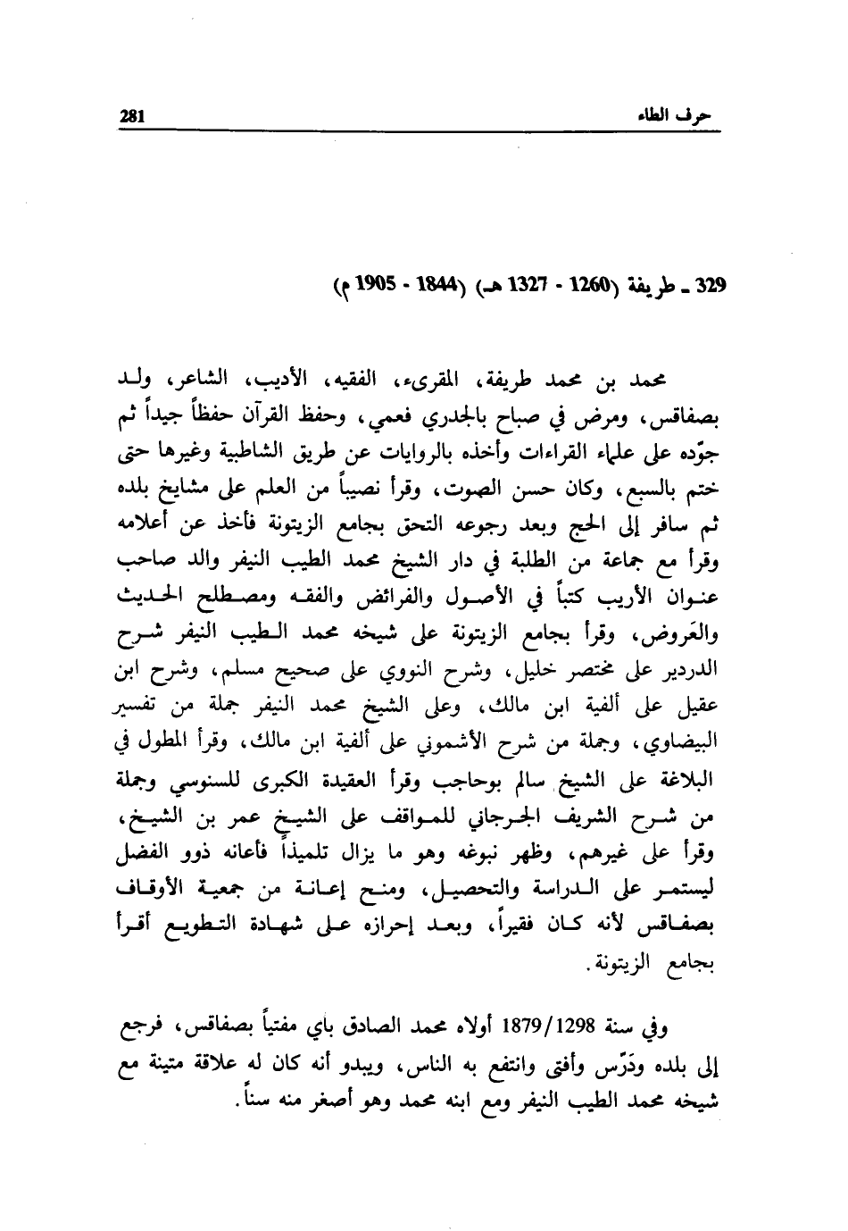 329 - طريفة (1260 - 1327 هـ) (1844 - 1905 م)