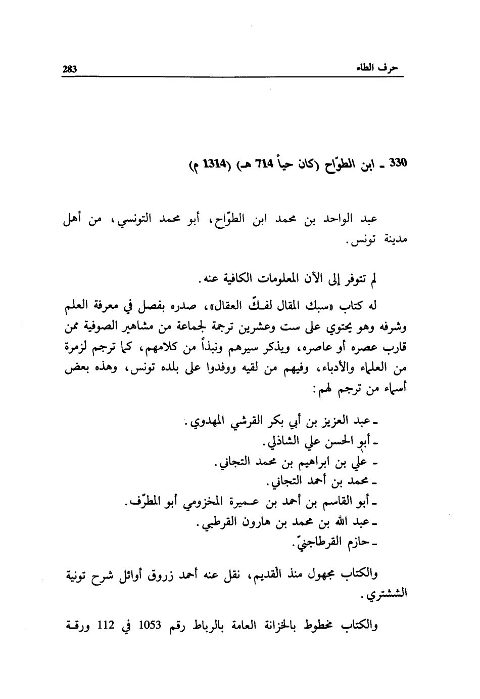 330 - ابن الطوّاح (كان حيا 714 هـ) (1314 م)