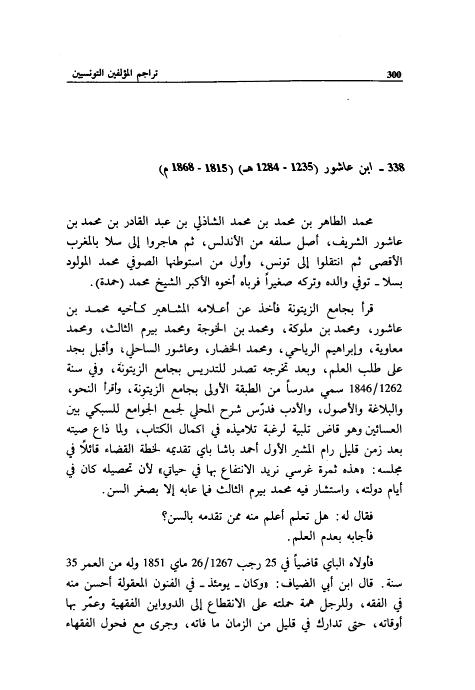 338 - ابن عاشور (1235 - 1284 هـ) (1815 - 1868 م)