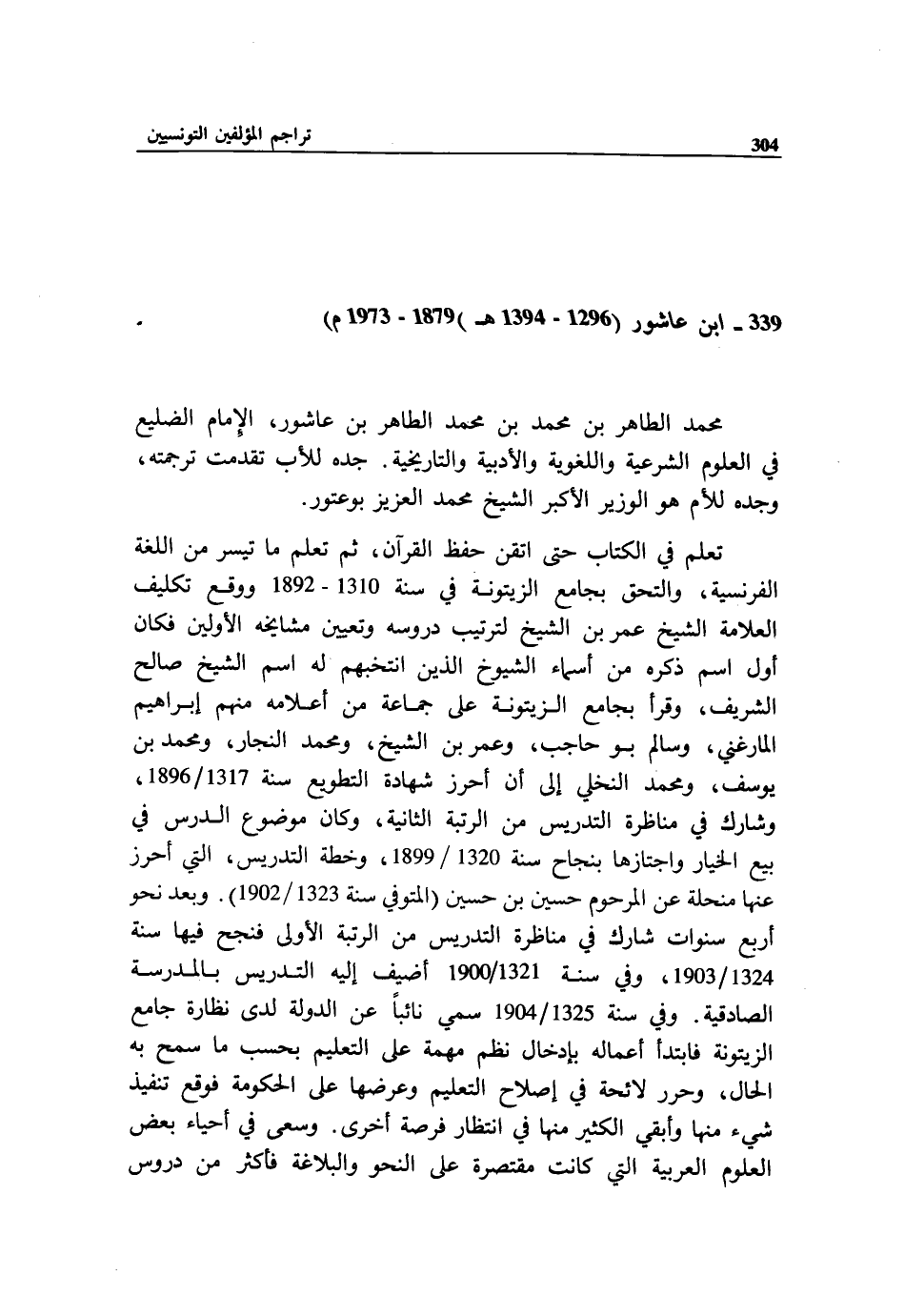 339 - ابن عاشور (1296 - 1394 هـ) 1879 - 1973 م)