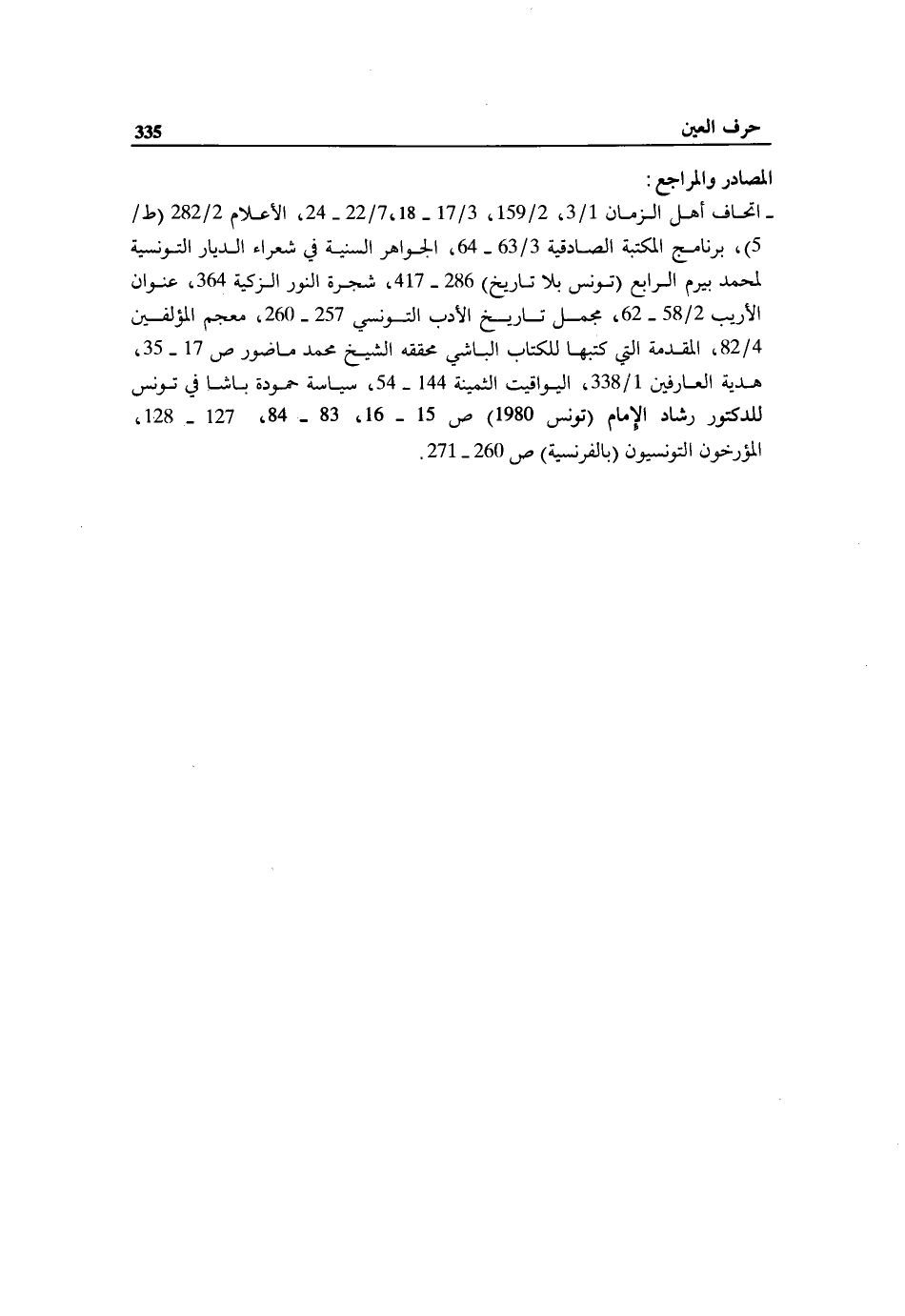 - اتحاف أهل الزمان 1/ 3، 2/ 159، 3/ 17 - 18، 7/ 22 - 24، الأعلام 2/ 282 (ط/ 5)، برنامج المكتبة الصادقية 3/ 63 - 64، الجواهر السنية في شعراء الديار التونسية لمحمد بيرم الرابع (تونس بلا تاريخ) 286 - 417، شجرة النور الزكية 364، عنوان الأريب 2/ 58 - 62، مجمل تاريخ الأدب التونسي 257 - 260، معجم المؤلفين 4/ 82، المقدمة التي كتبها للكتاب الباشي محققه الشيخ محمد ماضور ص 17 - 35، هدية العارفين 1/ 338، اليواقيت الثمينة 144 - 54، سياسة حمودة باشا في تونس للدكتور رشاد الإمام (تونس 1980) ص 15 - 16، 83 - 84، 127 - 128، المؤرخون التونسيون (بالفرنسية) ص 260 - 271.