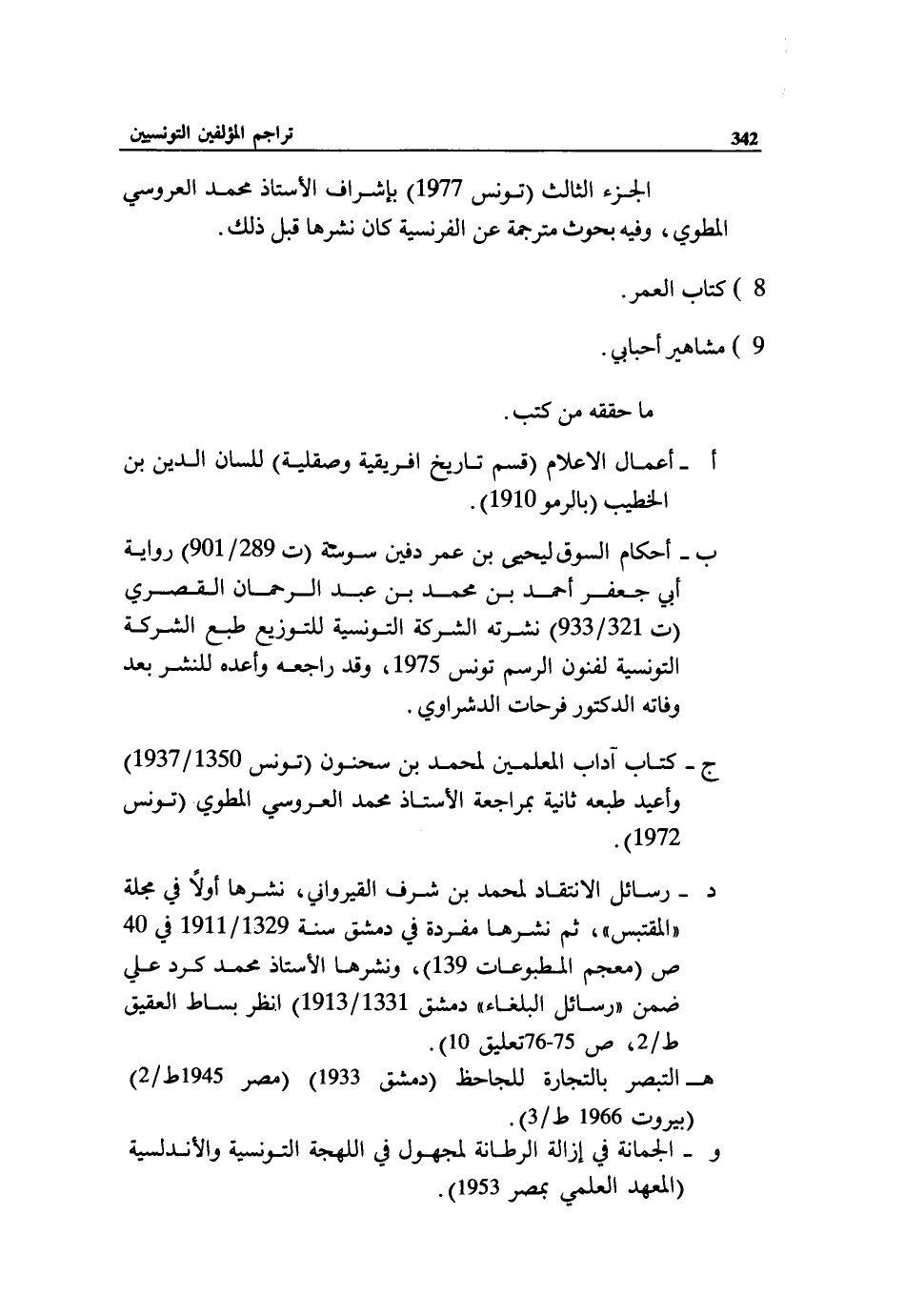 ج - كتاب آداب المعلمين لمحمد بن سحنون (تونس 1350/ 1937) وأعيد طبعه ثانية بمراجعة الأستاذ محمد العروسي المطوي (تونس 1972).