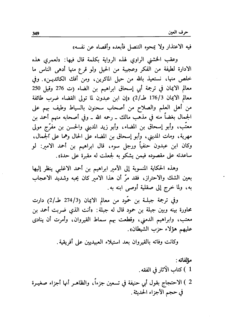 وفي ترجمة جبلة بن حمّود من معالم الايمان (3/ 274 ط 2/) دارت محاورة بينه وبين جبلة بن حمود قال له جبلة: «أنت الذي ضربت أحمد بن معتب، وابراهيم الدمني، وقطعت بهم سماط القيروان، وأمرت أن ينادى عليهم هؤلاء حزب الشيطان».