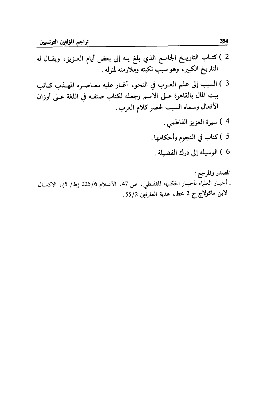 - أخبار العلماء بأخبار الحكماء للقفطي، ص 47، الأعلام 6/ 225 (ط 5/)، الاكمال لابن ماكولاج ج 2 خط، هدية العارفين 2/ 55.