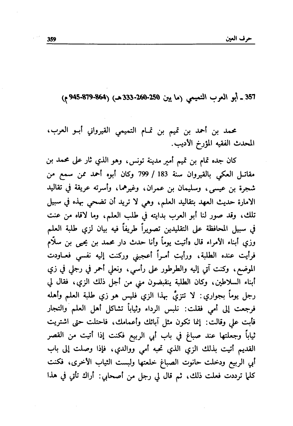 357 - أبو العرب التميمي (ما بين 250 - 260 - 333 هـ) (864 - 879 - 945 م)