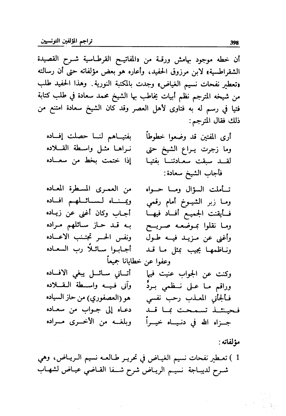 لقد سبقت سعادتنا بفتيا … إذا ختمت بخط من سعاده