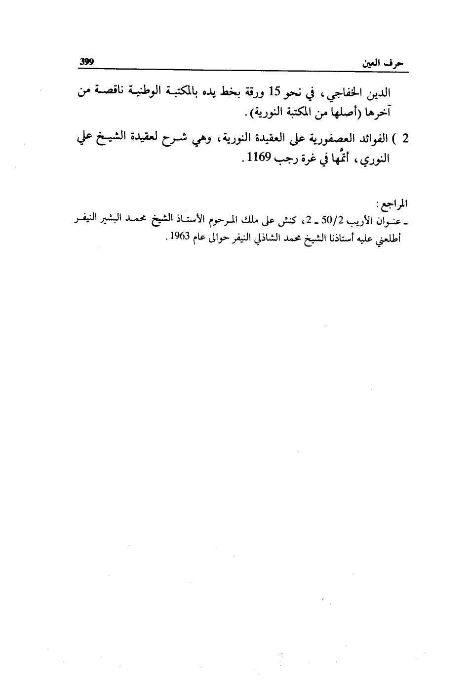 - عنوان الأريب 2/ 50 - 2، كنش على ملك المرحوم الأستاذ الشيخ محمد البشير النيفر أطلعني عليه أستاذنا الشيخ محمد الشاذلي النيفر حوالى عام 1963.