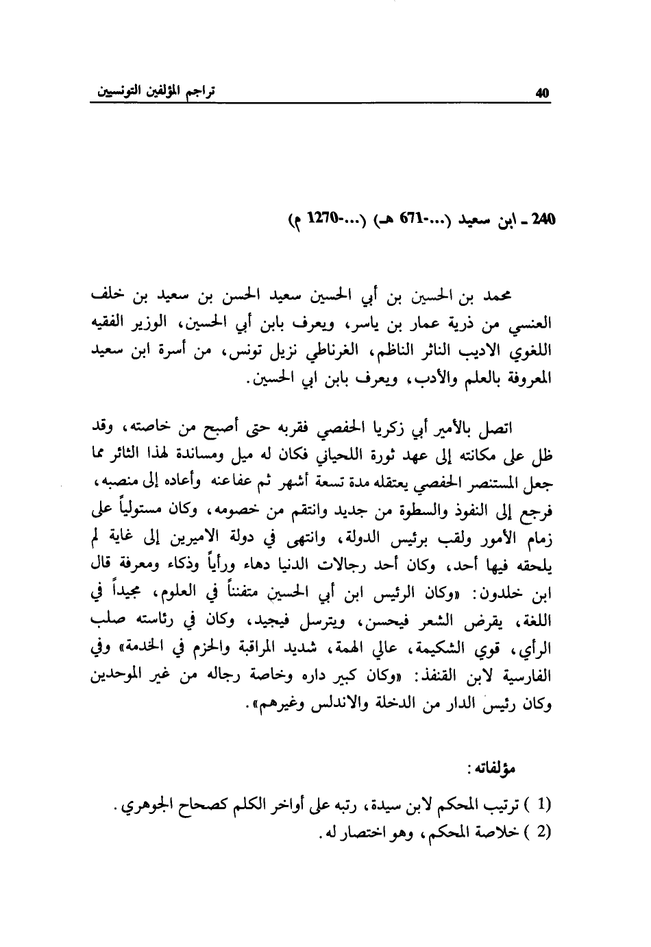 240 - ابن سعيد ( ... - 671 هـ) ( ... - 1270 م)