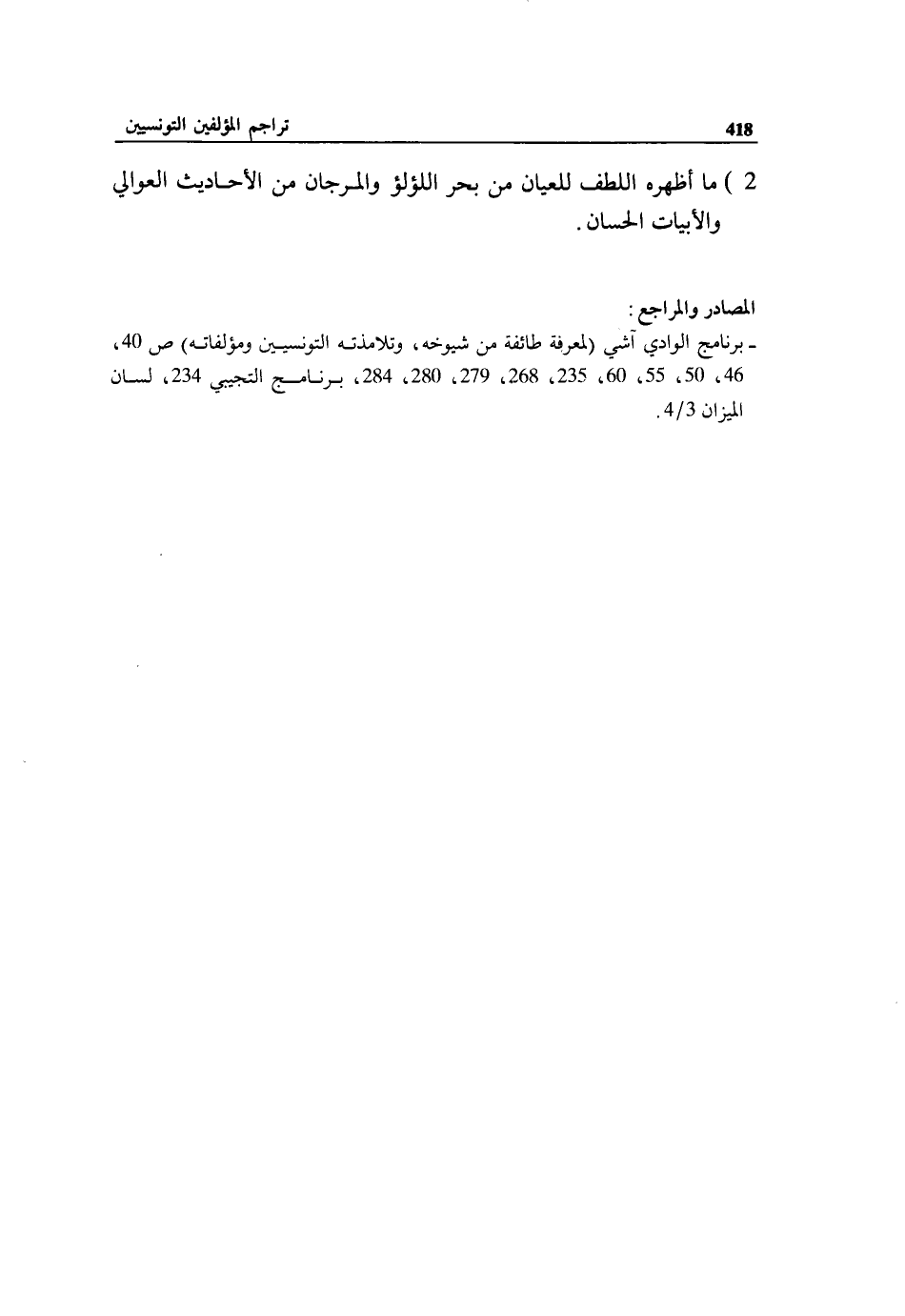 2) ما أظهره اللطف للعيان من بحر اللؤلؤ والمرجان من الأحاديث العوالي والأبيات الحسان.