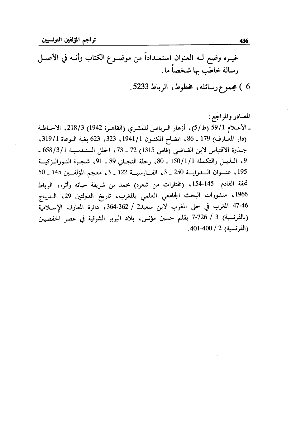 6) مجموع رسائله، مخطوط، الرباط 5233.