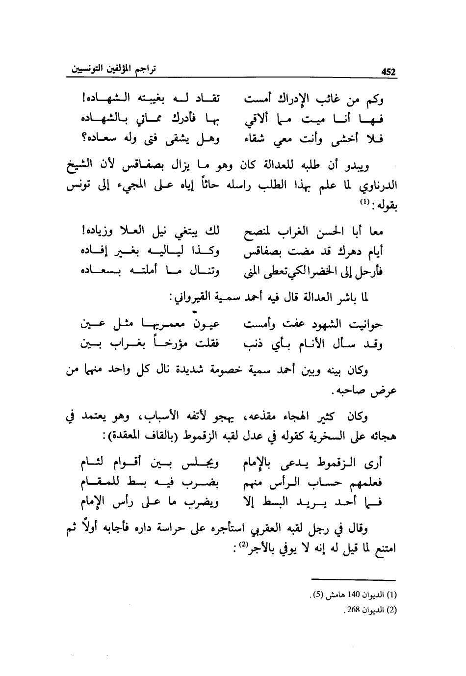 ويبدو أن طلبه للعدالة كان وهو ما يزال بصفاقس لأن الشيخ الدرناوي لما علم بهذا الطلب راسله حاثا إياه على المجيء إلى تونس بقوله: (¬1)