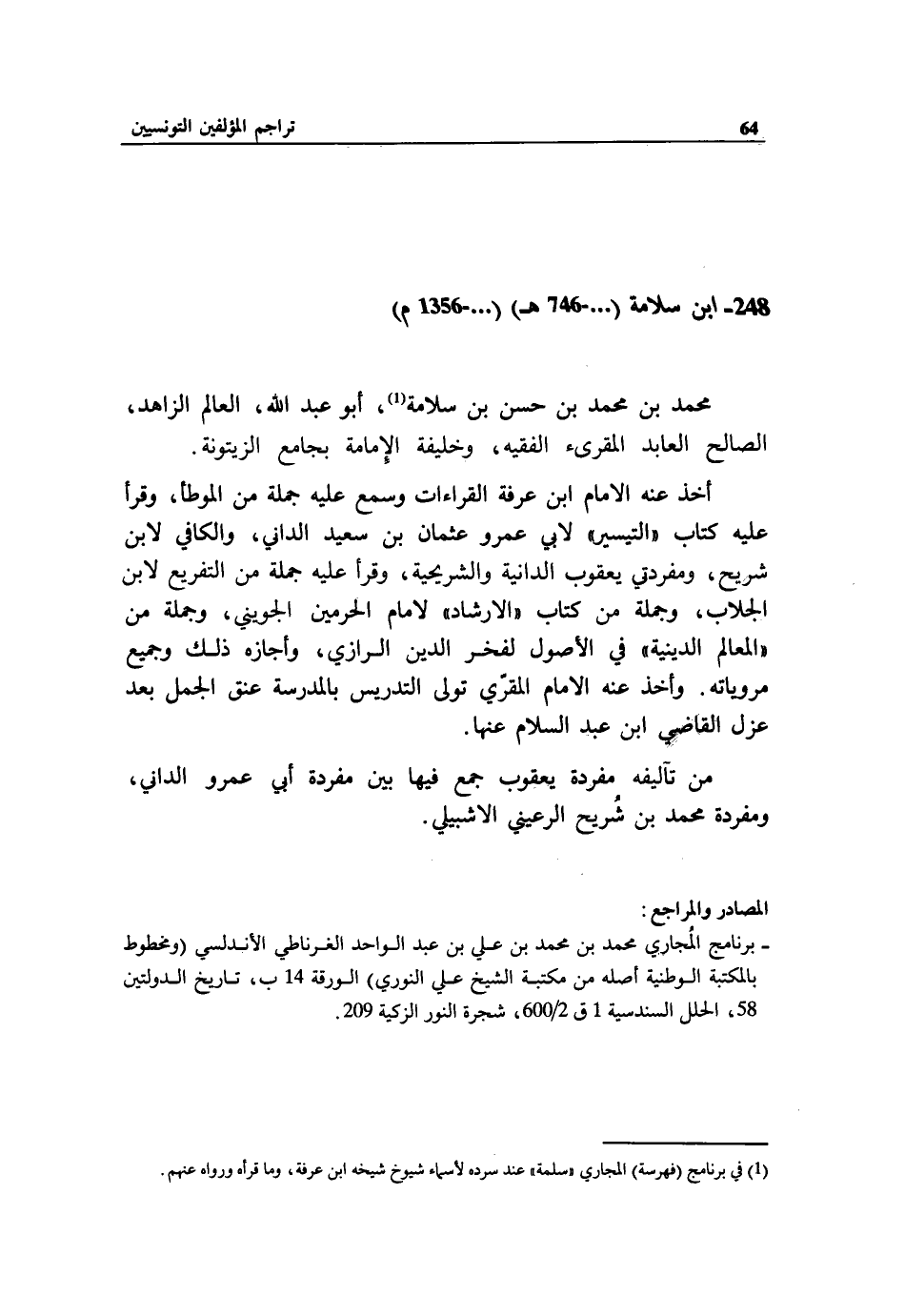 248 - ابن سلامة ( ... - 746 هـ) ( ... - 1356 م)