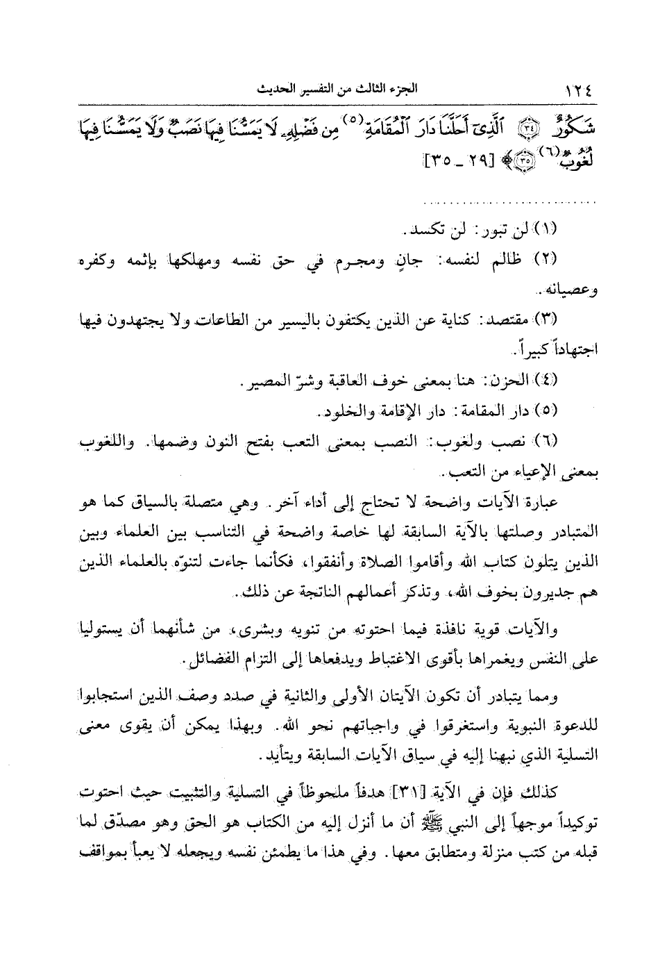 (6) نصب ولغوب: النصب بمعنى التعب بفتح النون وضمها. واللغوب بمعنى الإعياء من التعب.