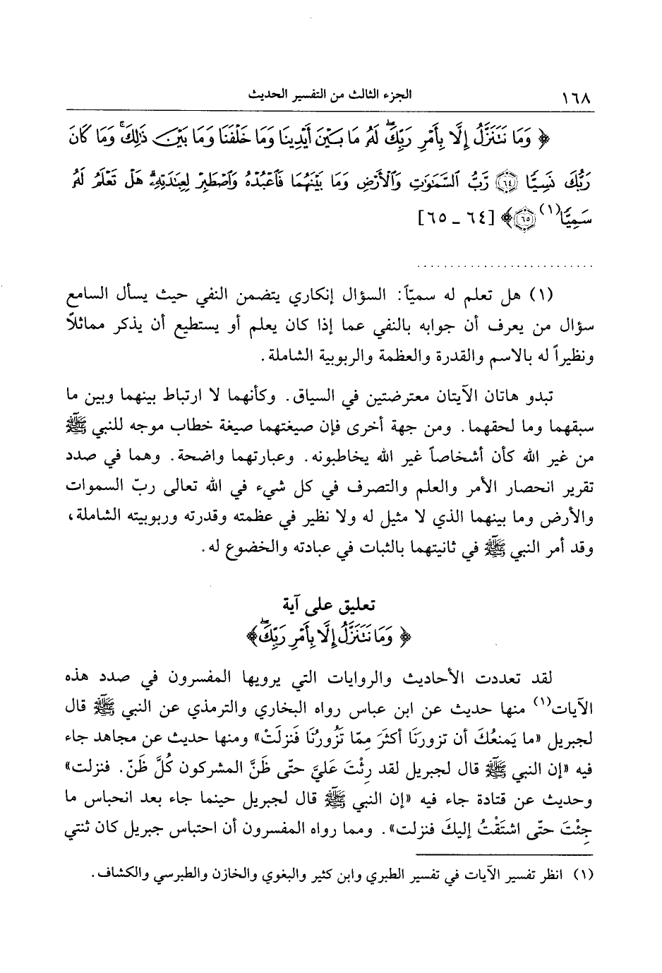 تعليق على آية وَما نَتَنَزَّلُ إِلَّا بِأَمْرِ رَبِّكَ