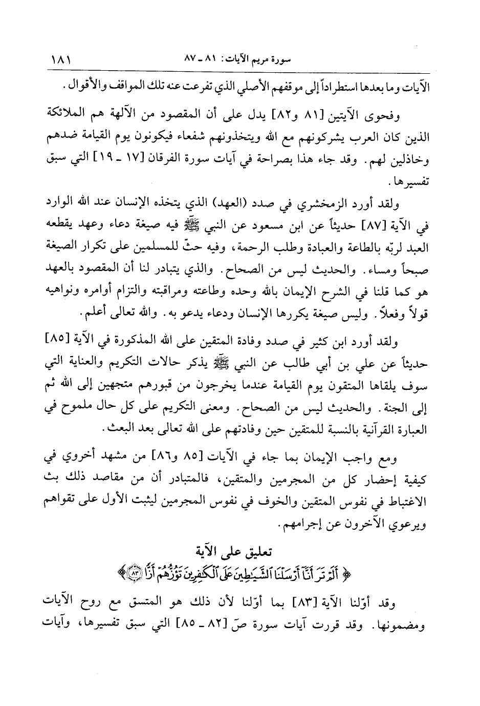 تعليق على الآية أَلَمْ تَرَ أَنَّا أَرْسَلْنَا الشَّياطِينَ عَلَى الْكافِرِينَ تَؤُزُّهُمْ أَزًّا (83)