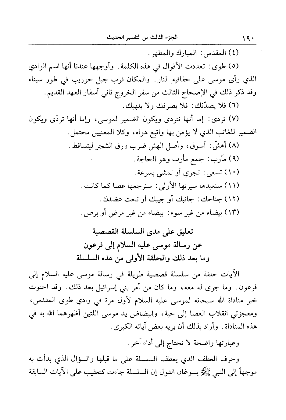 (5) طوى: تعددت الأقوال في هذه الكلمة. وأوجهها عندنا أنها اسم الوادي الذي رأى موسى على حفافيه النار. والمكان قرب جبل حوريب في طور سيناء وقد ذكر ذلك في الإصحاح الثالث من سفر الخروج ثاني أسفار العهد القديم.