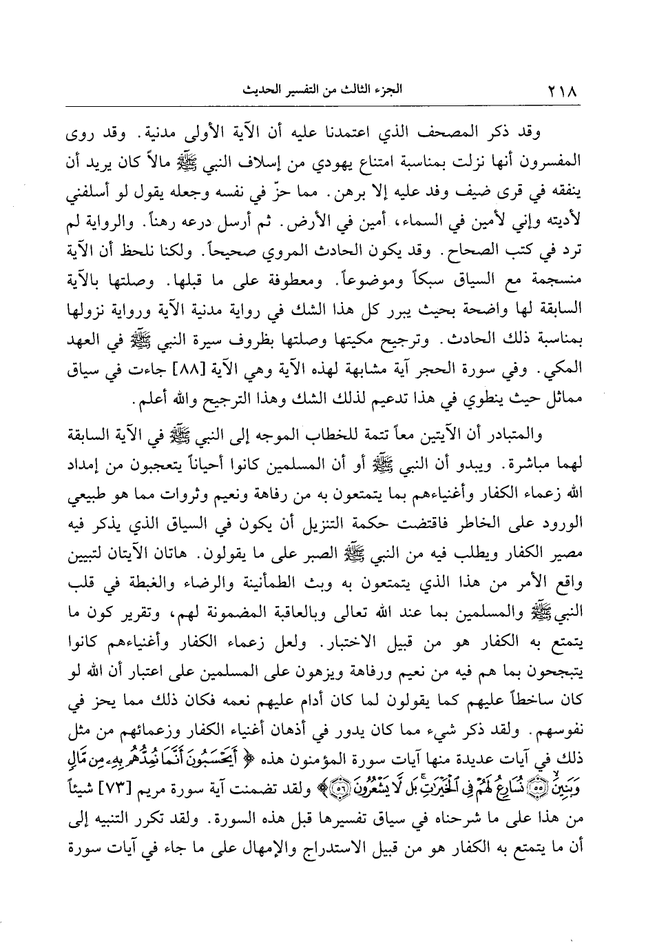وقد ذكر المصحف الذي اعتمدنا عليه أن الآية الأولى مدنية. وقد روى المفسرون أنها نزلت بمناسبة امتناع يهودي من إسلاف النبي صلى الله عليه وسلم مالا كان يريد أن ينفقه في قرى ضيف وفد عليه إلا برهن. مما حزّ في نفسه وجعله يقول لو أسلفني لأديته وإني لأمين في السماء، أمين في الأرض. ثم أرسل درعه رهنا. والرواية لم ترد في كتب الصحاح. وقد يكون الحادث المروي صحيحا. ولكنا نلحظ أن الآية منسجمة مع السياق سبكا وموضوعا. ومعطوفة على ما قبلها. وصلتها بالآية السابقة لها واضحة بحيث يبرر كل هذا الشك في رواية مدنية الآية ورواية نزولها بمناسبة ذلك الحادث. وترجيح مكيتها وصلتها بظروف سيرة النبي صلى الله عليه وسلم في العهد المكي. وفي سورة الحجر آية مشابهة لهذه الآية وهي الآية [88] جاءت في سياق مماثل حيث ينطوي في هذا تدعيم لذلك الشك وهذا الترجيح والله أعلم.