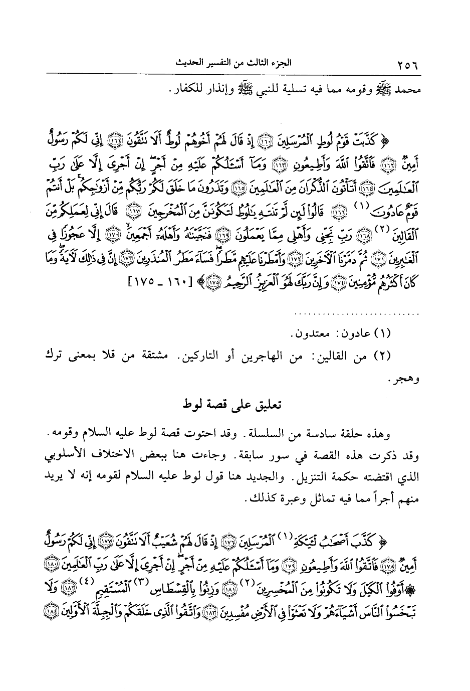وقد ذكرت هذه القصة في سور سابقة. وجاءت هنا ببعض الاختلاف الأسلوبي الذي اقتضته حكمة التنزيل. والجديد هنا قول لوط عليه السلام لقومه إنه لا يريد منهم أجرا مما فيه تماثل وعبرة كذلك.