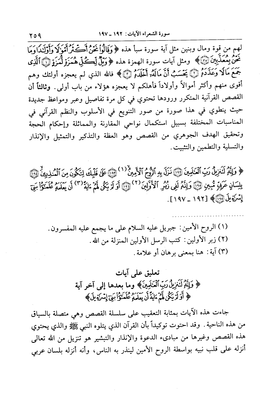 تعليق على آيات وَإِنَّهُ لَتَنْزِيلُ رَبِّ الْعالَمِينَ وما بعدها إلى آخر آية أَوَلَمْ يَكُنْ لَهُمْ آيَةً أَنْ يَعْلَمَهُ عُلَماءُ بَنِي إِسْرائِيلَ