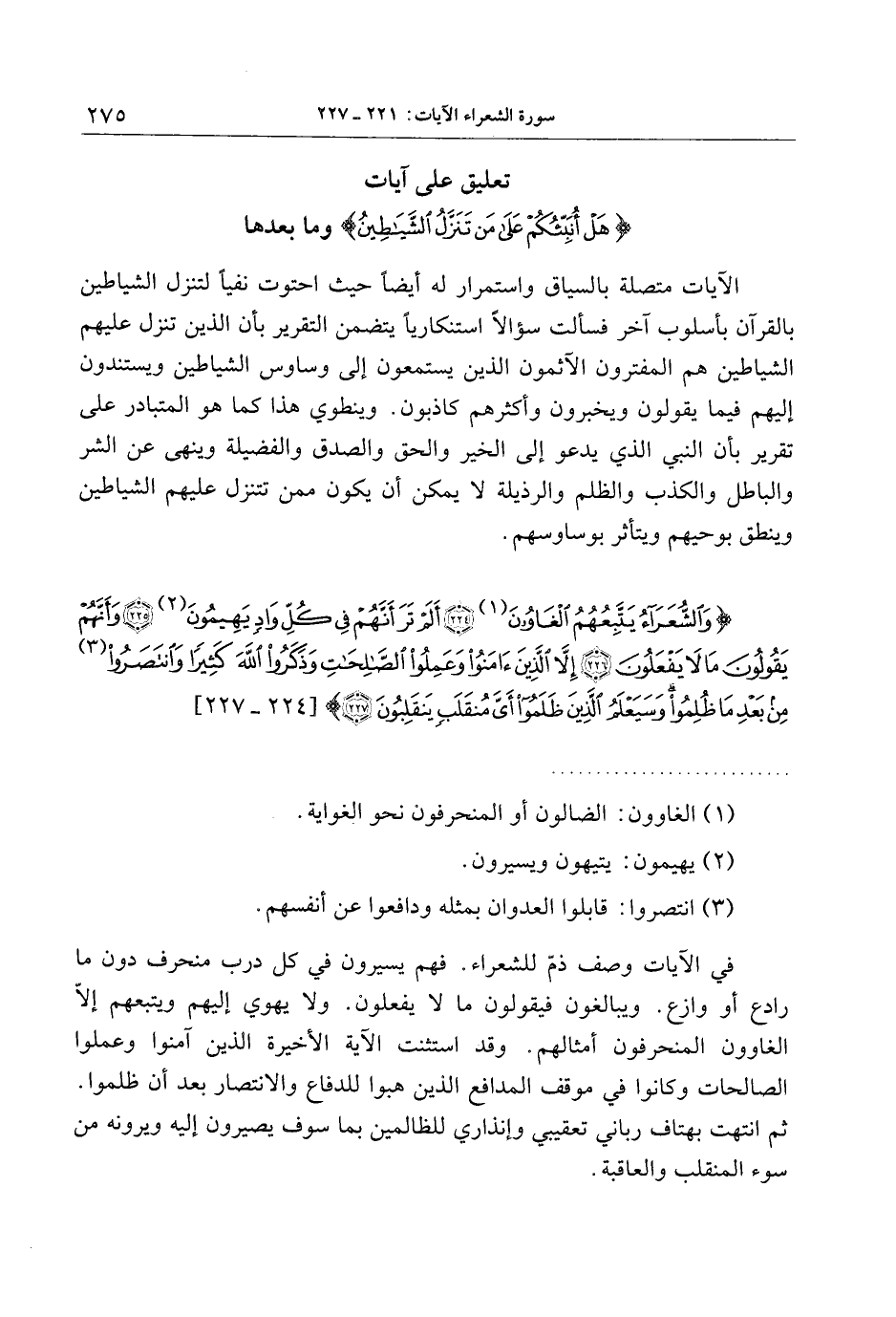 تعليق على آيات هَلْ أُنَبِّئُكُمْ عَلى مَنْ تَنَزَّلُ الشَّياطِينُ وما بعدها