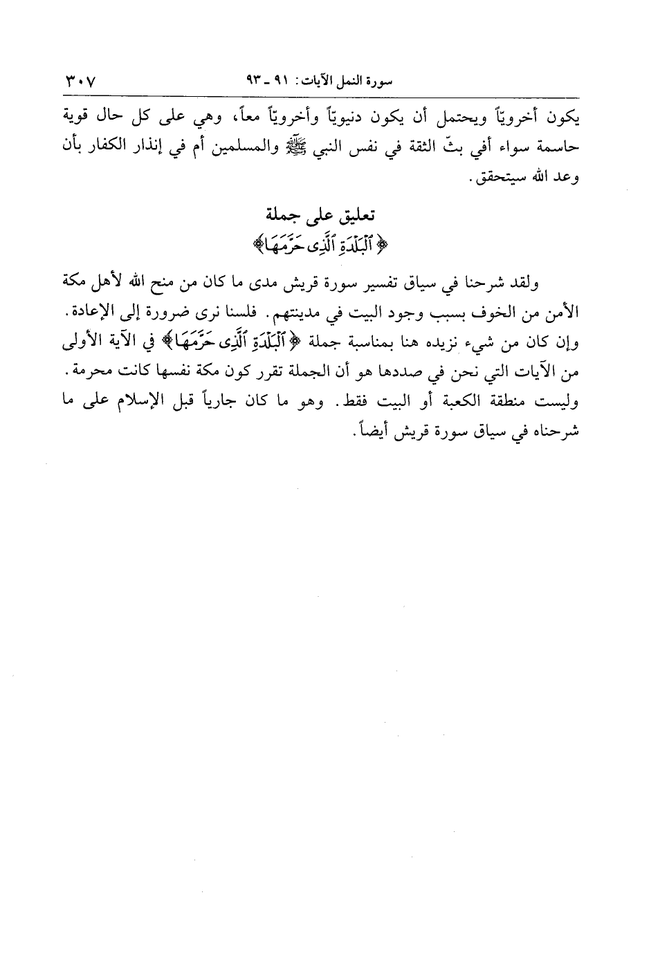 تعليق على جملة الْبَلْدَةِ الَّذِي حَرَّمَها