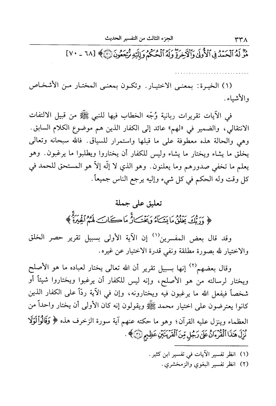 تعليق على جملة وَرَبُّكَ يَخْلُقُ ما يَشاءُ وَيَخْتارُ ما كانَ لَهُمُ الْخِيَرَةُ