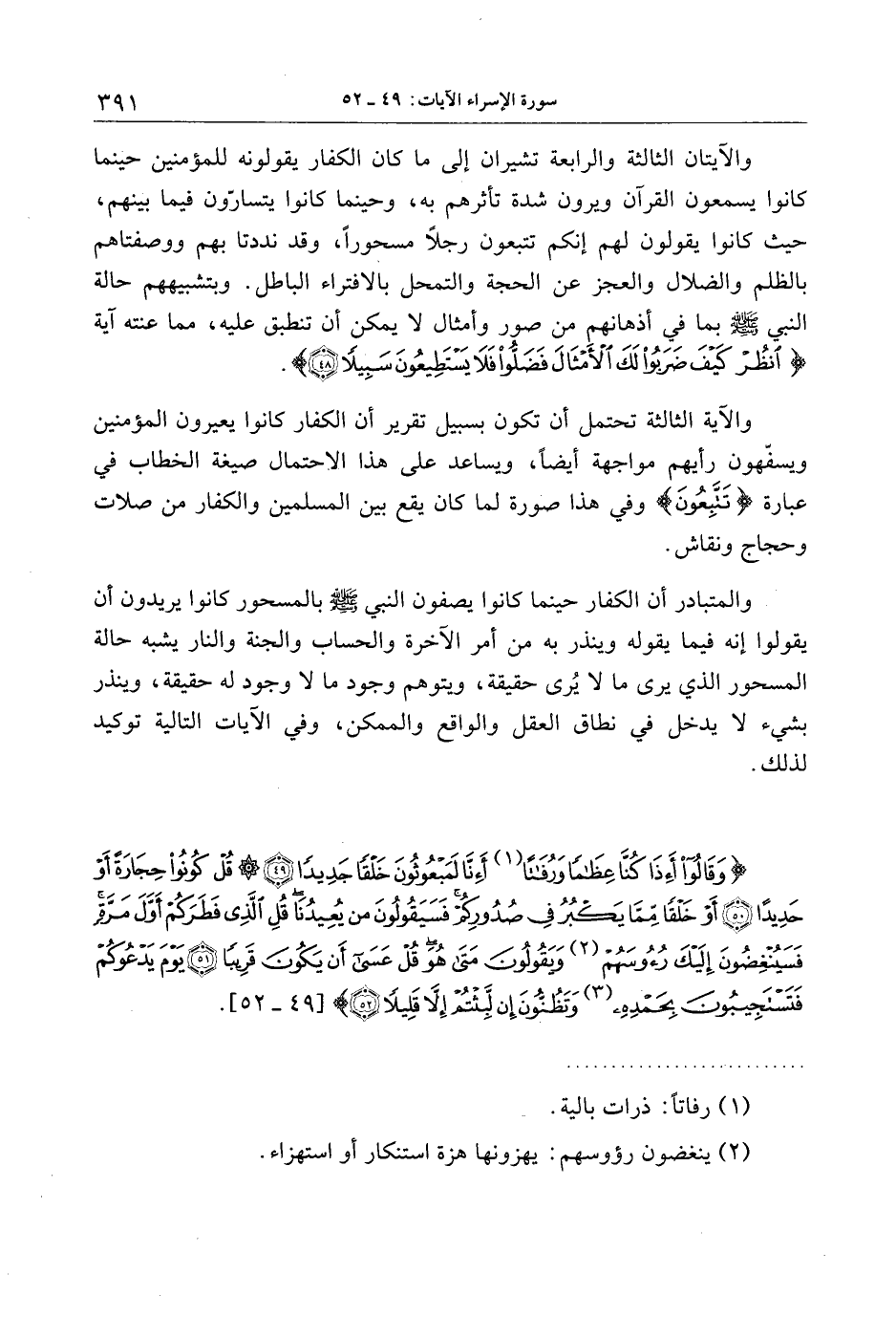 والمتبادر أن الكفار حينما كانوا يصفون النبي صلى الله عليه وسلم بالمسحور كانوا يريدون أن يقولوا إنه فيما يقوله وينذر به من أمر الآخرة والحساب والجنة والنار يشبه حالة المسحور الذي يرى ما لا يرى حقيقة، ويتوهم وجود ما لا وجود له حقيقة، وينذر بشيء لا يدخل في نطاق العقل والواقع والممكن، وفي الآيات التالية توكيد لذلك.