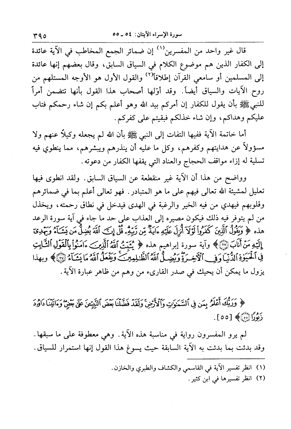 (1) انظر تفسير الآية في القاسمي والكشاف والطبري والخازن.