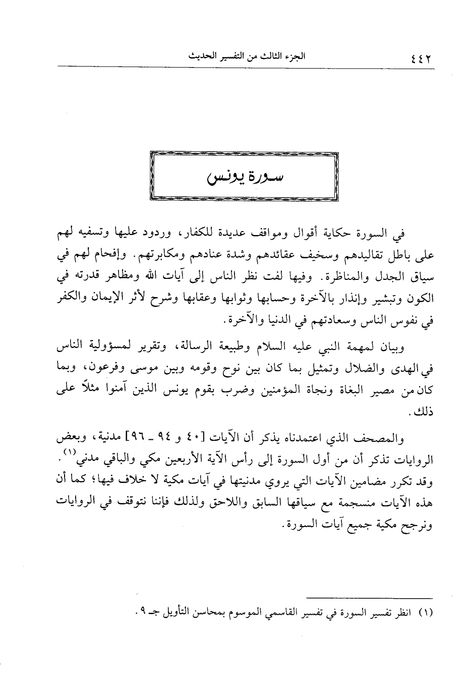 (1) انظر تفسير السورة في تفسير القاسمي الموسوم بمحاسن التأويل ج 9.