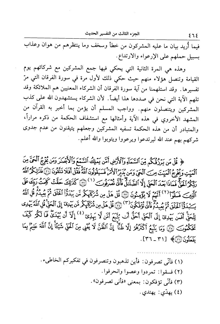 وهذه هي المرة الثانية التي يحكي فيها جمع المشركين مع شركائهم يوم القيامة وتنصل هؤلاء منهم حيث حكي ذلك لأول مرة في سورة الفرقان التي مرّ تفسيرها. وقد استلهمنا من آية سورة الفرقان أن الشركاء المعنيين هم الملائكة وقد تلهم الآية التي نحن في صددها هذا أيضا. لأن الشركاء يستشهدون الله على كذب المشركين ويتنصلون منهم. وواجب المسلم أن يؤمن بما أخبر به القرآن من المشهد الأخروي في هذه الآية وأمثالها مع استشفاف الحكمة من ذكره مرارا، والمتبادر أن من هذه الحكمة تسفيه المشركين وجعلهم يتيقنون من عدم جدوى شركهم بهم عند الله ليرتدعوا ويرعووا ويتوبوا والله أعلم.
