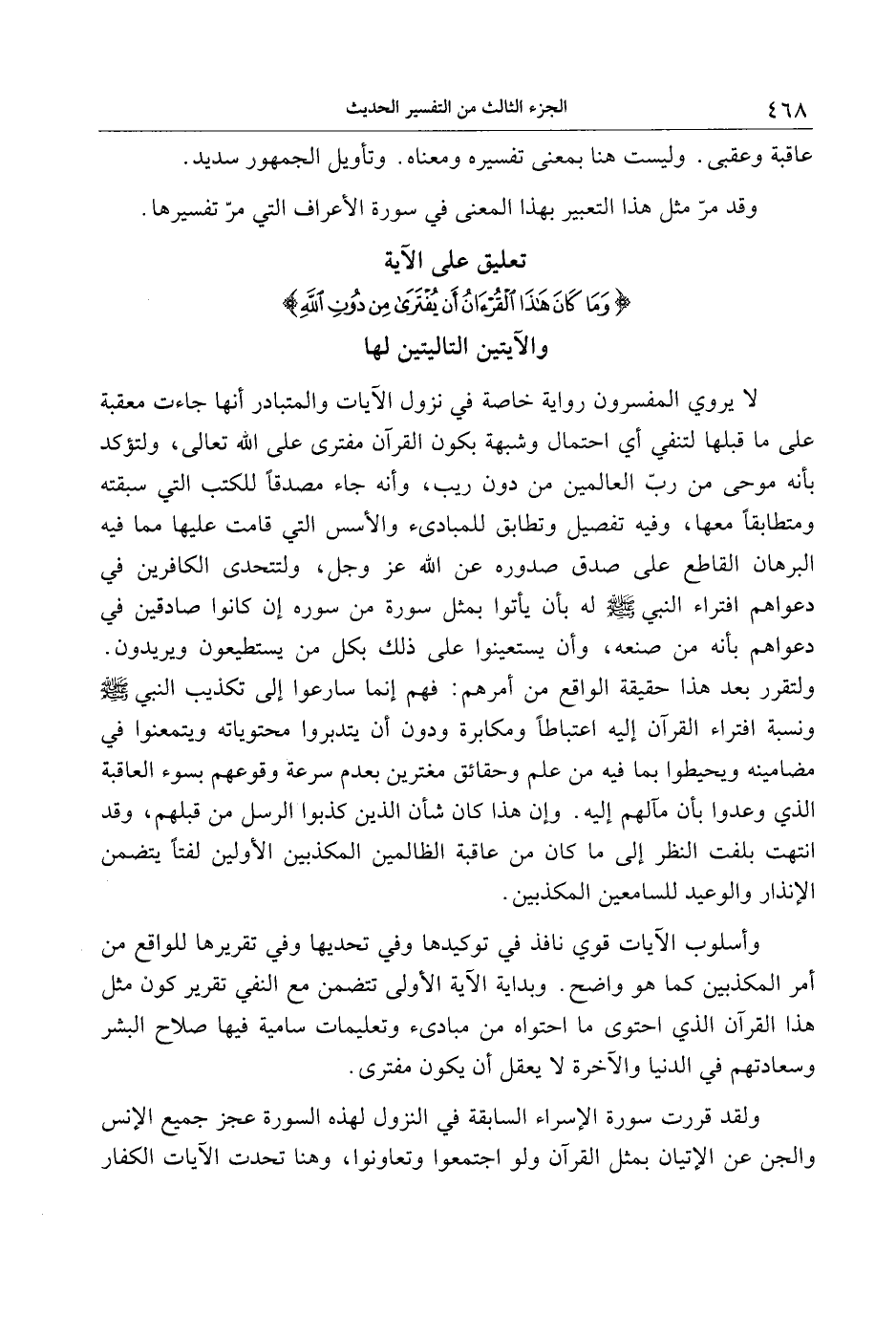 تعليق على الآية وَما كانَ هذَا الْقُرْآنُ أَنْ يُفْتَرى مِنْ دُونِ اللَّهِ والآيتين التاليتين لها