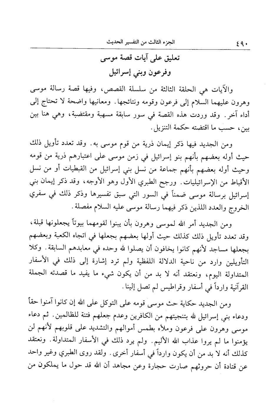 تعليق على آيات قصة موسى وفرعون وبني إسرائيل
