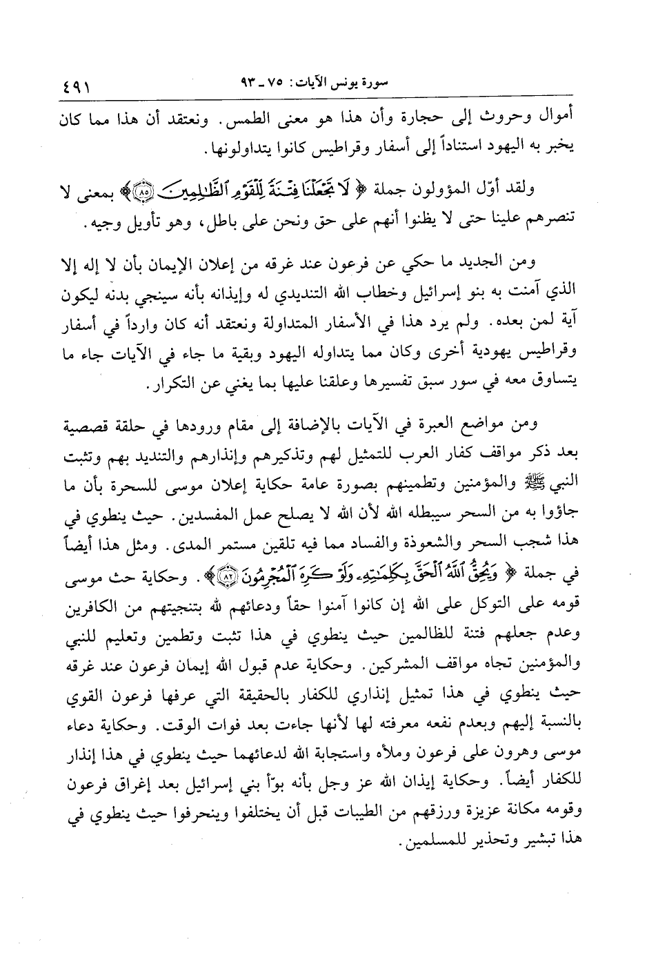 ومن الجديد ما حكي عن فرعون عند غرقه من إعلان الإيمان بأن لا إله إلا الذي آمنت به بنو إسرائيل وخطاب الله التنديدي له وإيذانه بأنه سينجي بدنه ليكون آية لمن بعده. ولم يرد هذا في الأسفار المتداولة ونعتقد أنه كان واردا في أسفار وقراطيس يهودية أخرى وكان مما يتداوله اليهود وبقية ما جاء في الآيات جاء ما يتساوق معه في سور سبق تفسيرها وعلقنا عليها بما يغني عن التكرار.