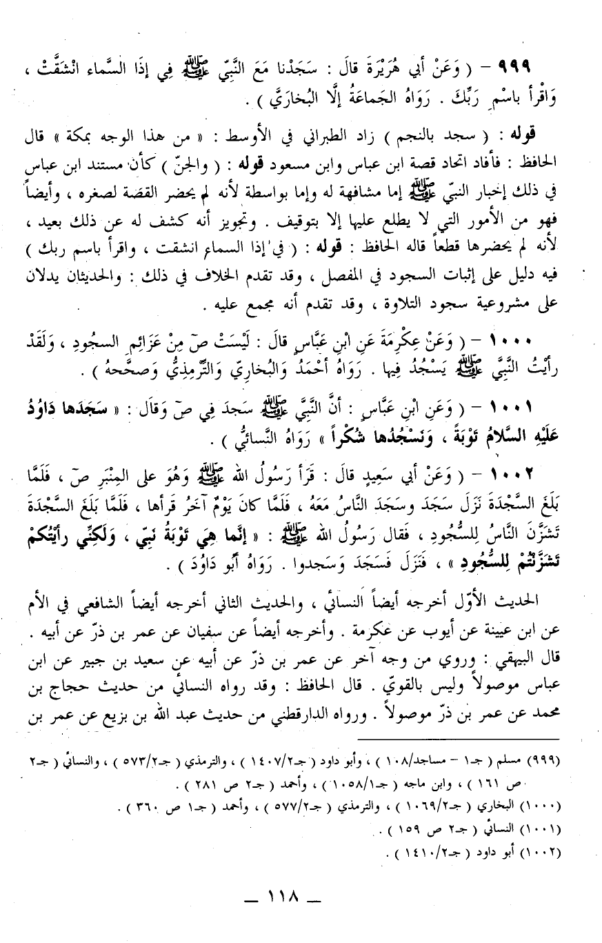 999 - (أَبِي هُرَيْرَةَ قَالَ: «سَجَدْنَا مَعَ النَّبِيِّ - صَلَّى اللَّهُ عَلَيْهِ وَسَلَّمَ - فِي {إِذَا السَّمَاءُ انْشَقَّتْ} [الانشقاق: 1] ، وَ {اقْرَأْ بِاسْمِ رَبِّكَ} [العلق: 1] » . رَوَاهُ الْجَمَاعَةُ إلَّا الْبُخَارِيَّ) .