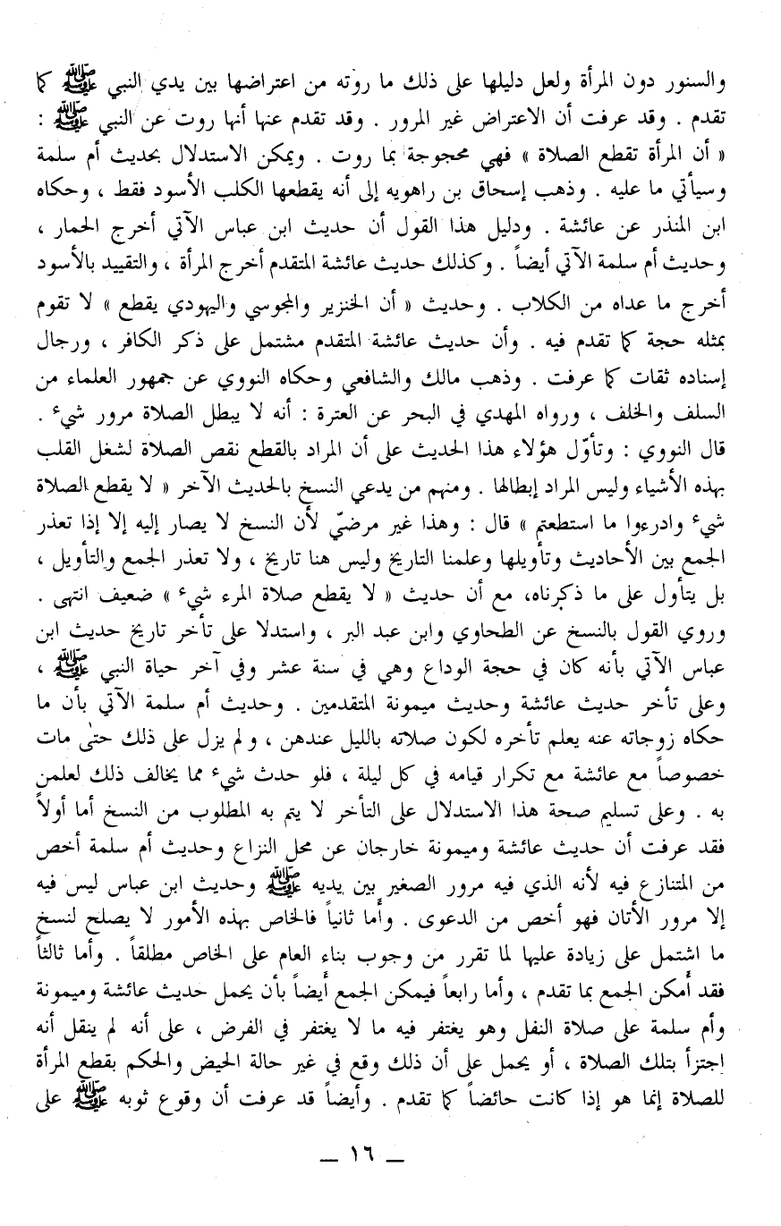 ـــــــــــــــــــــــــــــQوَالسِّنَّوْرُ دُونَ الْمَرْأَةِ وَلَعَلَّ دَلِيلَهَا عَلَى ذَلِكَ مَا رَوَتْهُ مِنْ اعْتِرَاضِهَا بَيْنَ يَدَيْ النَّبِيِّ - صَلَّى اللَّهُ عَلَيْهِ وَسَلَّمَ - كَمَا تَقَدَّمَ. وَقَدْ عَرَفْتَ أَنَّ الِاعْتِرَاضَ غَيْرُ الْمُرُورِ. وَقَدْ تَقَدَّمَ عَنْهَا أَنَّهَا رَوَتْ عَنْ النَّبِيِّ - صَلَّى اللَّهُ عَلَيْهِ وَسَلَّمَ -: «أَنَّ الْمَرْأَةَ تَقْطَعُ الصَّلَاةَ» فَهِيَ مَحْجُوجَةٌ بِمَا رَوَتْ