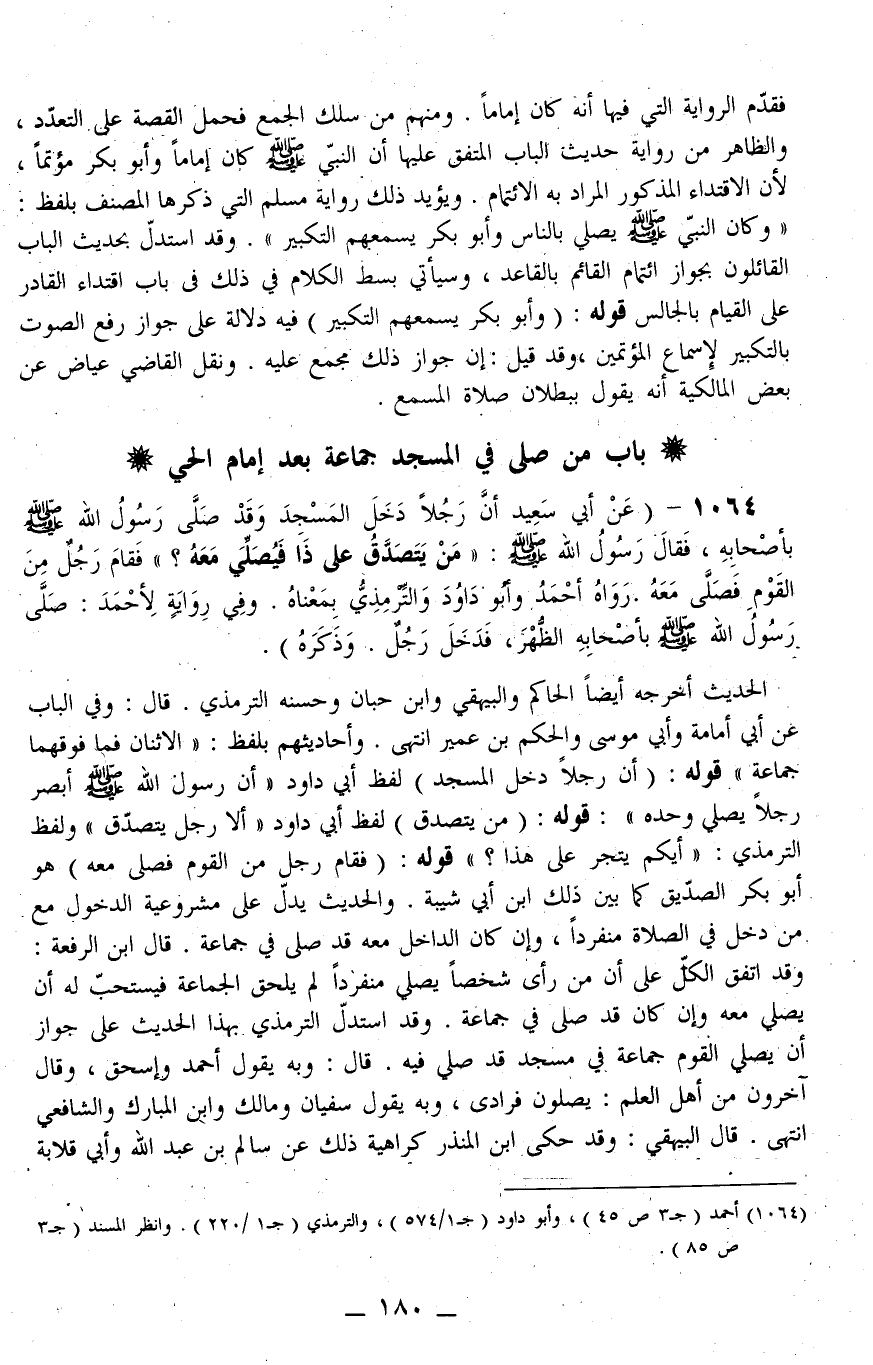 الْحَدِيثُ أَخْرَجَهُ أَيْضًا الْحَاكِمُ وَالْبَيْهَقِيُّ وَابْنُ حِبَّانَ وَحَسَّنَهُ التِّرْمِذِيُّ. قَالَ: وَفِي الْبَابِ عَنْ أَبِي أُمَامَةَ وَأَبِي مُوسَى وَالْحَكَمِ بْنِ عُمَيْرٍ انْتَهَى. وَأَحَادِيثُهُمْ بِلَفْظِ: «الِاثْنَانِ فَمَا فَوْقَهُمَا جَمَاعَةٌ» قَوْلُهُ: (أَنَّ رَجُلًا دَخَلَ الْمَسْجِدَ) لَفْظُ أَبِي دَاوُد " أَنَّ رَسُولَ اللَّهِ - صَلَّى اللَّهُ عَلَيْهِ وَسَلَّمَ - أَبْصَرَ رَجُلًا يُصَلِّي وَحْدَهُ ": قَوْلُهُ: (مَنْ يَتَصَدَّقُ) لَفْظُ أَبِي دَاوُد " أَلَا رَجُلٌ يَتَصَدَّقُ " وَلَفْظُ التِّرْمِذِيِّ: " أَيُّكُمْ يَتَّجِرُ عَلَى هَذَا؟ " قَوْلُهُ: (فَقَامَ رَجُلٌ مِنْ الْقَوْمِ فَصَلَّى مَعَهُ) هُوَ أَبُو بَكْرٍ الصِّدِّيقُ كَمَا بَيَّنَ ذَلِكَ ابْنُ أَبِي شَيْبَةَ.
