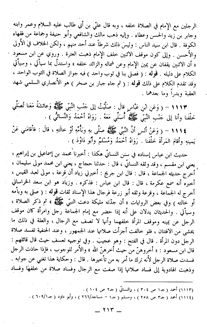 1113 - (وَعَنْ ابْنِ عَبَّاسٍ قَالَ: «صَلَّيْتُ إلَى جَنْبِ النَّبِيِّ - صَلَّى اللَّهُ عَلَيْهِ وَسَلَّمَ - وَعَائِشَةُ مَعَنَا تُصَلِّي خَلْفَنَا وَأَنَا جَنْبَ النَّبِيِّ - صَلَّى اللَّهُ عَلَيْهِ وَسَلَّمَ - أُصَلِّي مَعَهُ» رَوَاهُ أَحْمَدُ وَالنَّسَائِيُّ) .