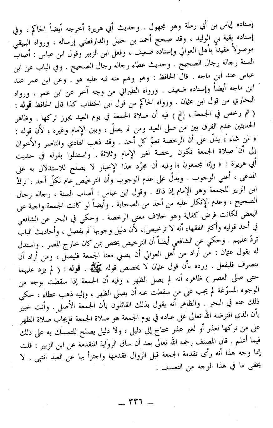 وَقَدْ ذَهَبَ الْهَادِي وَالنَّاصِرُ وَالْأَخَوَانِ إلَى أَنَّ صَلَاةَ الْجُمُعَةِ تَكُونُ رُخْصَةً لِغَيْرِ الْإِمَامِ وَثَلَاثَةٍ. وَاسْتَدَلُّوا بِقَوْلِهِ فِي حَدِيثِ أَبِي هُرَيْرَةَ: " وَإِنَّا مُجَمِّعُونَ " وَفِيهِ أَنَّ مُجَرَّدَ هَذَا الْإِخْبَارَ لَا يَصْلُحُ لِلِاسْتِدْلَالِ بِهِ عَلَى الْمُدَّعَى، أَعْنِي الْوُجُوبَ. وَيَدُلّ عَلَى عَدَم الْوُجُوبِ وَأَنَّ التَّرْخِيصَ عَامٌّ لِكُلِّ أَحَدٍ تَرْكُ ابْنِ الزُّبَيْرِ لِلْجُمُعَةِ وَهُوَ الْإِمَامُ إذْ ذَاكَ. وَقَوْلُ ابْنِ عَبَّاسٍ: أَصَابَ السُّنَّةَ، رِجَالُهُ رِجَالُ الصَّحِيحِ، وَعَدَمُ الْإِنْكَارِ عَلَيْهِ مِنْ أَحَدٍ مِنْ الصَّحَابَةِ. وَأَيْضًا لَوْ كَانَتْ الْجُمُعَةُ وَاجِبَةٌ عَلَى الْبَعْضِ لَكَانَتْ فَرْضَ كِفَايَةٍ وَهُوَ خِلَافُ مَعْنَى الرُّخْصَةِ. وَحُكِيَ فِي الْبَحْرِ عَنْ الشَّافِعِيِّ فِي أَحَدِ قَوْلَيْهِ وَأَكْثَرِ الْفُقَهَاءِ أَنَّهُ لَا تَرْخِيصَ، لِأَنَّ دَلِيلَ وُجُوبِهَا لَمْ يُفَصَّلْ، وَأَحَادِيثُ الْبَابِ تَرُدُّ عَلَيْهِمْ. وَحُكِيَ عَنْ الشَّافِعِيِّ أَيْضًا أَنَّ التَّرْخِيصَ يَخْتَصُّ بِمَنْ كَانَ خَارِجَ الْمِصْرِ. وَاسْتُدِلَّ لَهُ بِقَوْلِ عُثْمَانُ: مَنْ أَرَادَ مِنْ أَهْل الْعَوَالِي أَنْ يُصَلِّيَ مَعَنَا الْجُمُعَةَ فَلْيُصَلِّ، وَمَنْ أَرَادَ أَنْ يَنْصَرِفَ فَلْيَفْعَلْ وَرَدَّهُ بِأَنَّ قَوْلَ عُثْمَانَ لَا يُخَصِّصُ قَوْلُهُ - صَلَّى اللَّهُ عَلَيْهِ وَسَلَّمَ -. قَوْلُهُ: (لَمْ يَزِدْ عَلَيْهِمَا حَتَّى صَلَّى الْعَصْرَ) ظَاهِرُهُ أَنَّهُ لَمْ يُصَلِّ الظُّهْرَ، وَفِيهِ أَنَّ الْجُمُعَةَ إذَا سَقَطَتْ بِوَجْهٍ مِنْ الْوُجُوهِ الْمُسَوِّغَةِ لَمْ يَجِبْ عَلَى مَنْ سَقَطَتْ عَنْهُ أَنْ يُصَلِّيَ الظُّهْرَ، وَإِلَيْهِ ذَهَبَ عَطَاءٌ، حُكِيَ ذَلِكَ عَنْهُ فِي الْبَحْرِ.
